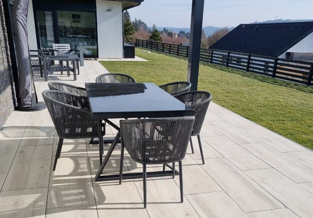 Rozsáhlá realizace pokládky dlažby a obkladu ve venkovní relaxační a společenské zóně, která proměnila bezprostřední okolí domu v luxusní venkovní obývací prostor a plně využívá blízkost vodní plochy. Cílem bylo sjednotit estetiku domu s terasou a zahradou pomocí přírodních materiálů.